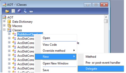 In his post he starts by showing us how to create a delegate in Microsoft Dynamics AX 2012, then he explains what delegates are and why they are used. He also explains what Event Handlers are and their relationship to the AX 2012 AOT.