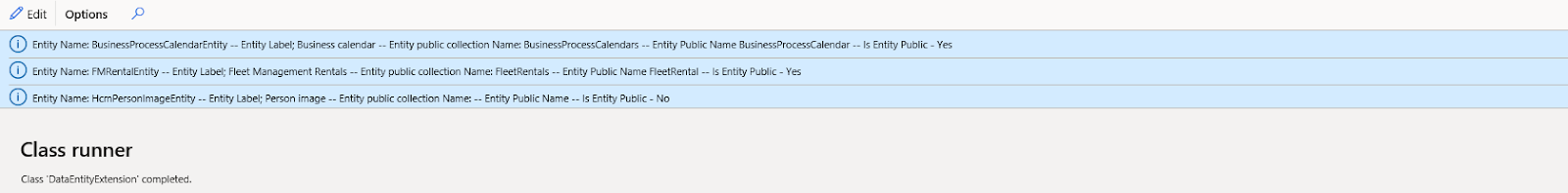 info(strFmt("Entity Name: %1 -- Entity Label; %2 -- Entity public collection Name: %3 -- Entity Public Name %4 -- Is Entity Public - %5",