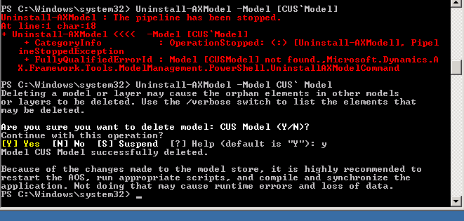 Uninstall-AXModel -Model CUS` Model