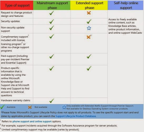 As of 3/28/2015, there are four types of 'End Dates' when looking at the support information: 'Regular Support', 'Mainstream Support', 'Extended Support', and 'Self-help online support'.